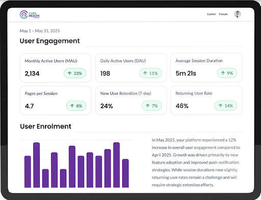 A scalable platform starts with understanding what employees actually need. Using analytics to measure engagement levels, health risks, and sentiment trends helps identify high-impact opportunities. This enables tailored support for different populations, such as remote workers, frontline teams, or caregivers, rather than relying on assumptions.
