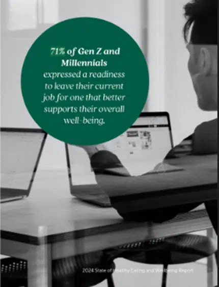 According to Deloitte’s 2024 Gen Z and Millennial Survey, employees in this age range are values-driven, strive for better work-life balance, and want to make a difference. The 2024 State of Healthy Eating and Wellbeing Report revealed that 71% of Millennials and Gen Z workers would switch jobs for one with better wellness features.