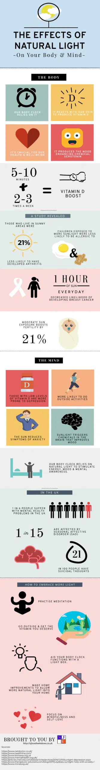 Learn about how increased levels of natural light can positively affect our body and mind with an informative infographic.