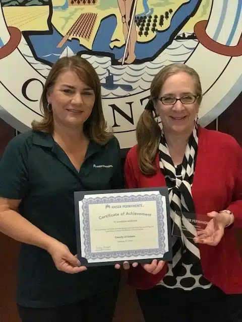 Kaiser Permanente’s Wellness Ambassador awards program was launched in 2018 to recognize those who have distinguished themselves in workforce health. There are over 1,400 agencies within CalPERS with various degrees of workforce health engagement. CalPERS Territory Managers were allowed to nominate a limited number of their agencies who met significant selection criteria. Those nominations were then reviewed by an internal panel of neutral reviewers with expertise in workforce health, and five overall winners were selected with Solano County being one of them.